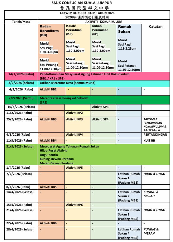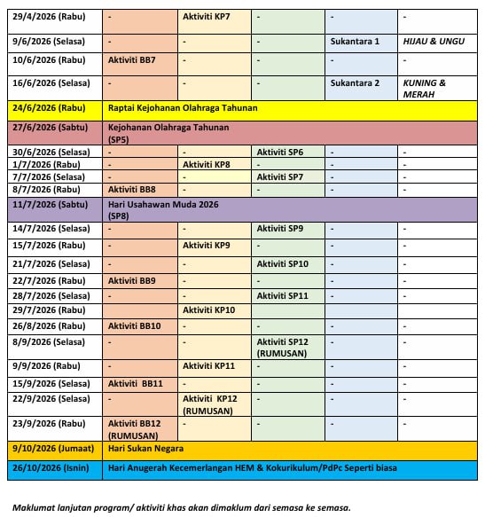 Takwim Kokurikulum 2026